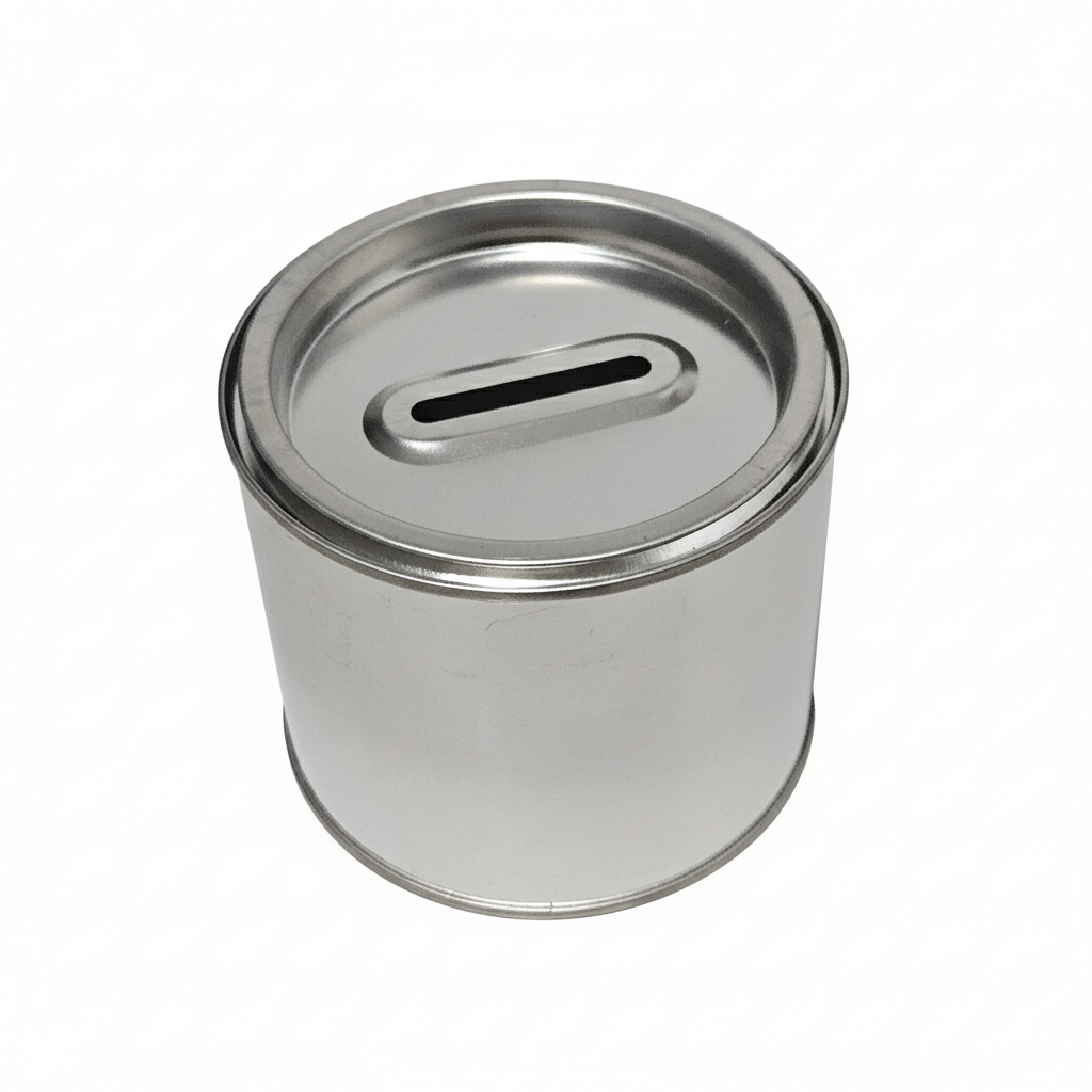 Opakowanie metalowe przeznaczone do zbierania pieniędzy. Posiada otwór dostosowany do wszystkich rozmiarów banknotów i monet w EU. Opakowania mogą zostać zabezpieczone naklejanymi plombami.